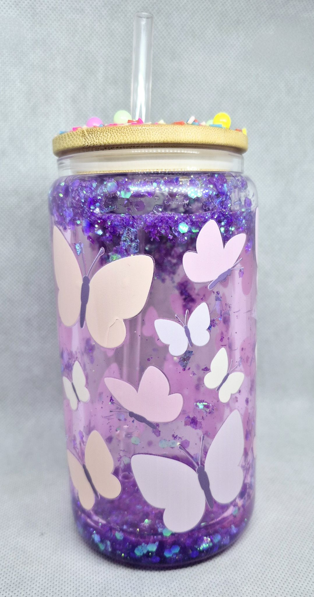 473 ML Schneekugelbecher Transparente Doppelwandige Dosen mit Bambusdeckel